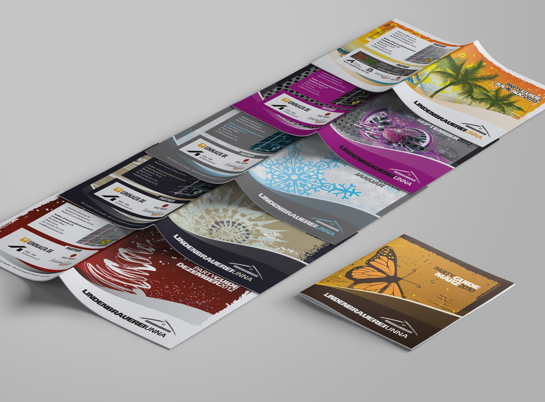 Zeitraum der Kreation: November 2009 – November 2019 Monatsprogramm-Hefte "DISCO" Seit Juli 2018 „90er Party“